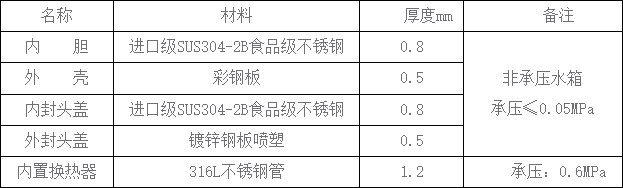 1、水箱內(nèi)置換熱器,冷水進(jìn)入換熱器進(jìn)入熱量交換,從而提高出水溫度。無需使用集熱循環(huán)泵、防凍液,減少了運(yùn)營成本。
